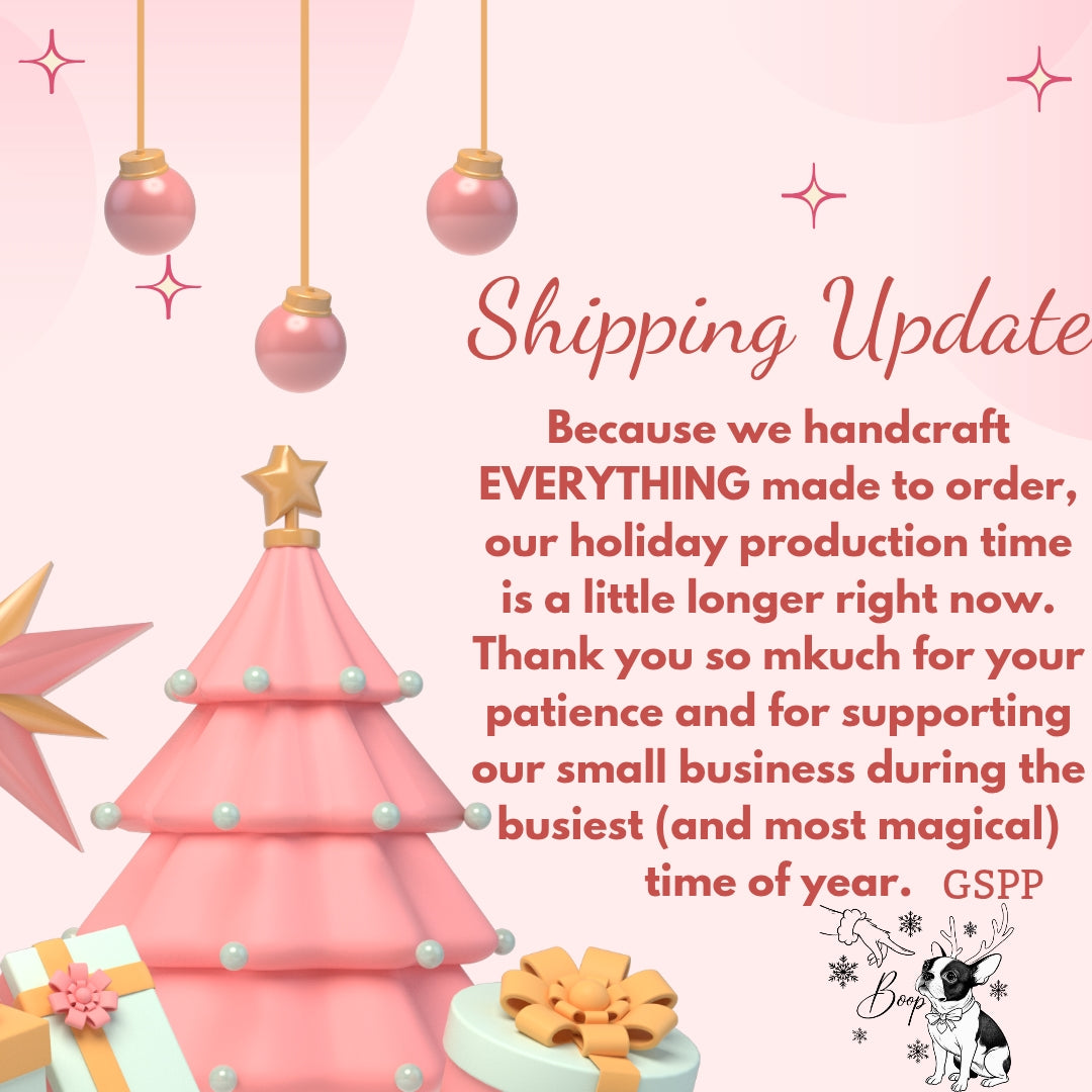 Hours Of OperationBecause we handcraft EVERYTHING made to order, our holiday production time is running a little longer right now.
